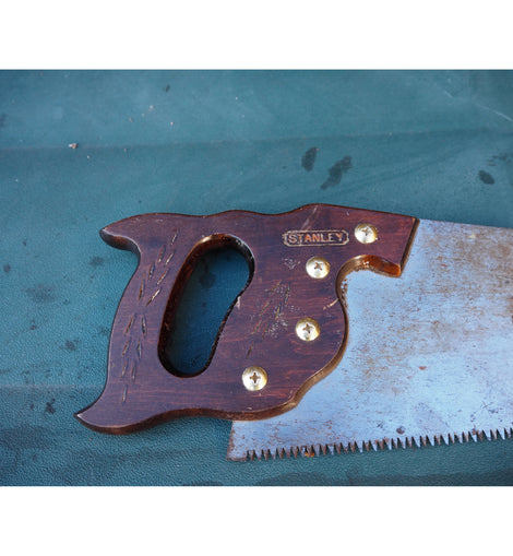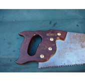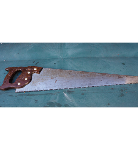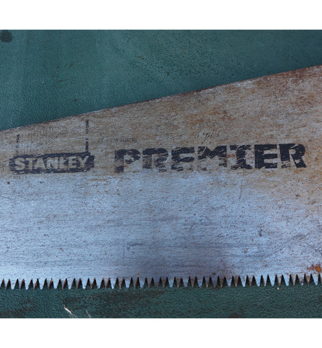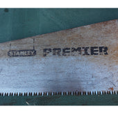Unusual 26" long Stanley "Premier" cross cut saw with fully enclosed scratch carved beech handle. Lance tooth which is pretty unusual as well. I can't seem to find anything out about this exact saw, I don't know whether it is English or American as I have never seen one before. Good condition.