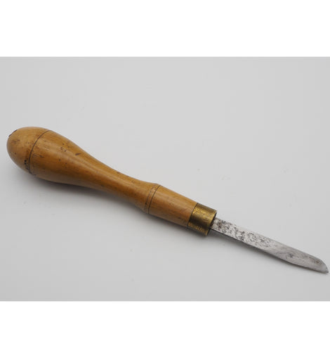 Good clean antique timber marking knife with nice shape turned beech handle and btrass ferrule. Good long blade.