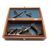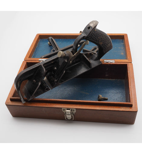 Stanley England No. 78 Fillister and rebate plane housed in a very nicely made mahogany box. Plane is complete with all parts with good length blade. Some loss of finish but basically perfectly OK.