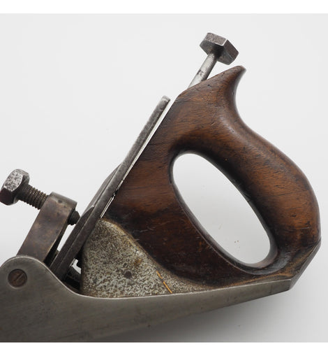 Early Norris of London patent annealed iron No. A50 adjustable smoothing plane. Good original condition throughout. Cast metal lever cap. 1913 patent adjuster. Walnut infill including large enclosed rear handle and good length original thick parallel iron. No faults.