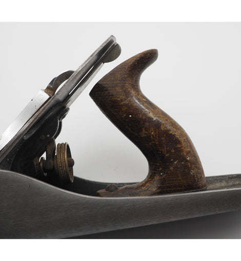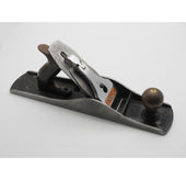 A classic Stanley England No. 5 1/2 jack plane, renowned for its versatility in woodworking. This mid-sized bench plane excels at initial stock removal and surface preparation, making it an indispensable tool for both rough and finish work. The robust cast iron sole and adjustable blade deliver reliable performance across various wood types. Whether you're flattening boards, chamfering edges, or refining surfaces, this dependable plane offers the precision and control that experienced craftspeople demand. A timeless addition to any serious woodworker's toolkit.