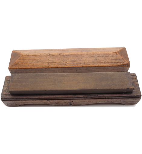 Gorgeous 19th century walnut boxed natural sharpening stone probably a Washita stone. The walnut box is gorgeous, really well made, a nice shape and a lovely colour. Stone is in good condition also. Stone size 8 1/2" by 1 1/2".