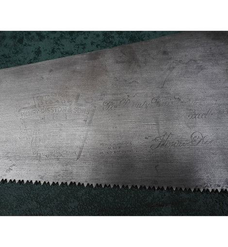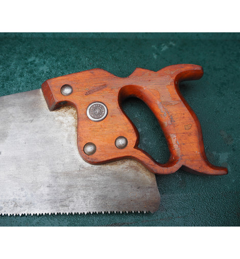Good clean DISSTON USA D8, 22" long skew back panel saw withg fully enclosed beech handle and cast steel blade. 10 TPI. 1 5/8" at the tip. Nice clean blade.