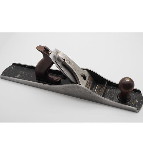 Pre-war late 1930's Stanley England No. 6 bench plane. Thick casting gives this plane great extra weight. Rosewood handles with no cracks or damage and good length original blade. Condition is used but basically OK apart from a very small mouth chip.