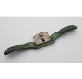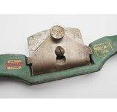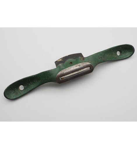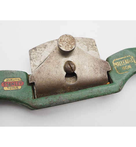 RARE green finish Stanley England malleable iron CURVED spokeshave. I have never seen an example of this English green Stanley spokeshave before. Has "Made in Eng" cast into the inside of the handle and has both original trade labels still in tact. RARE !!!