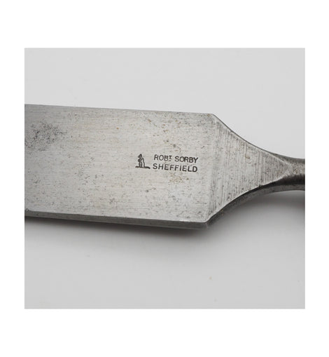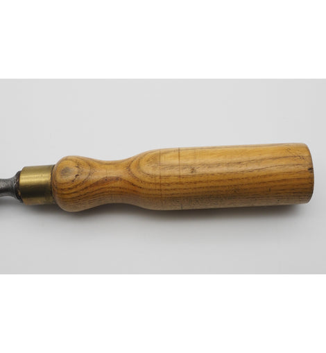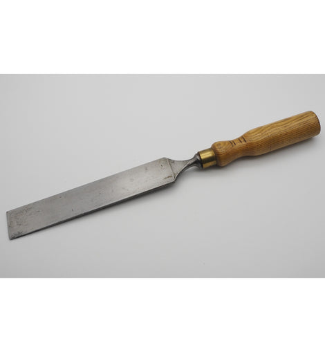 Superb, hardly used, 1 1/2" wide thin firmer paring chisel with nicely turned ash handle and brass ferrule by Robert Sorby of Sheffield. Very fgood condition. Massive 9 1/2" long blade.