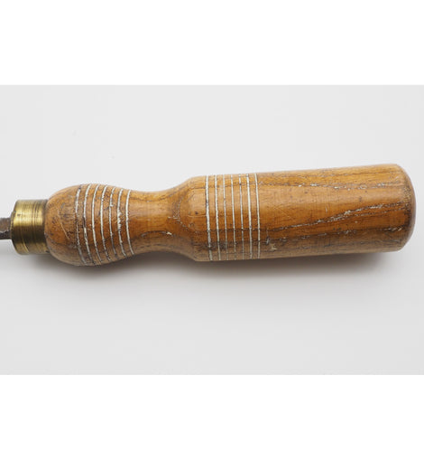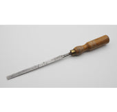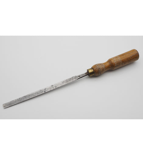 Pretty decent 19th century 3/8" thin bevel-edged paring chisel by Hearnshaw Brothers of Sheffield with turned ash handle and brass ferrule. Cast steel. 7 1/2" long blade.