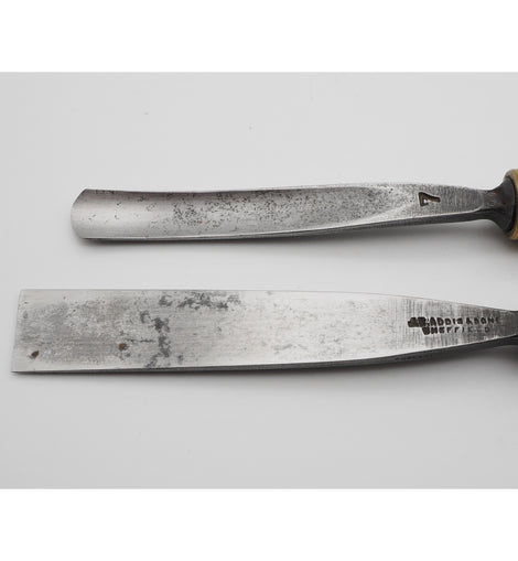 7/8" shallow gouge by J. B. Addis & Sons of Sheffield with turned oak handle.