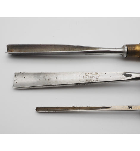 3 very good carving chisels by William Marples & Sons of Sheffield as follows;