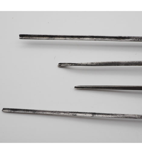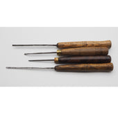 Tiny 1/16" No. 4 carving gouge by S. J. Addis of London with turned hickory handle (slight pitting).