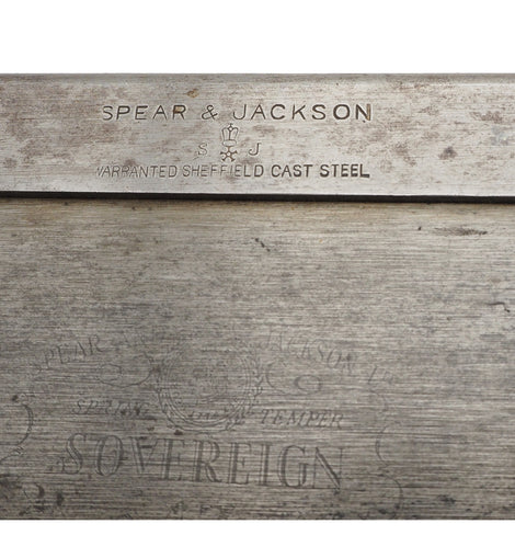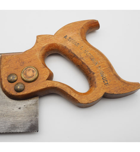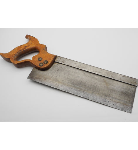 Good 12" heavy steel back tenon saw with fully enclosed beech handle by Spear and Jackson of Sheffield. Sovereign brand. Fine teeth. 3 1/4" blade depth.
