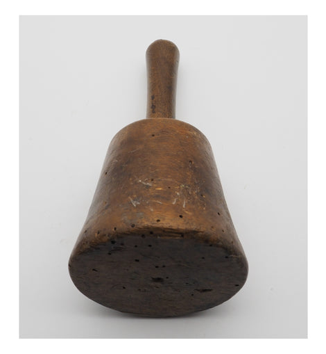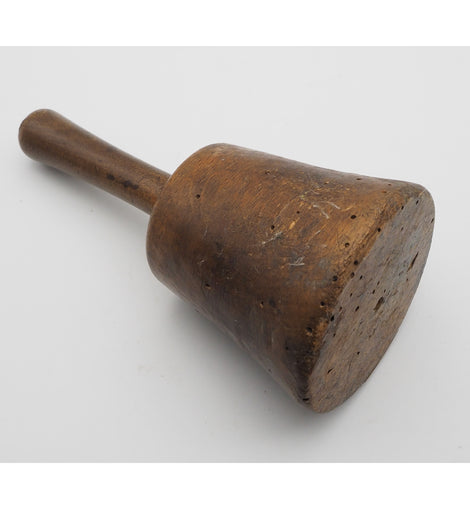 Small size 19th century turned beech carvers mallet. Nice shape and a nice colour but does have a number of old worm holes. Is still perfectly solid though. Head size is 3 1/4" diameter by 3" long. 7" long overall.