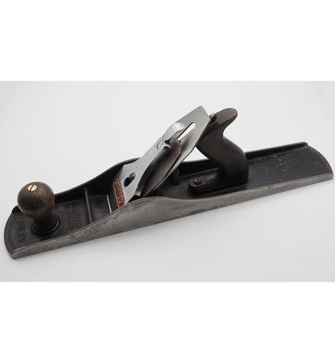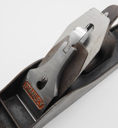 Stanley England No. 6 bench plane with original beech handles with no damage and full length old replacement Stanley blade. Slight pitting to the metal mainly on the sole but nothing serious. Still a perfectly good usable plane.