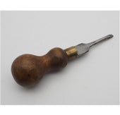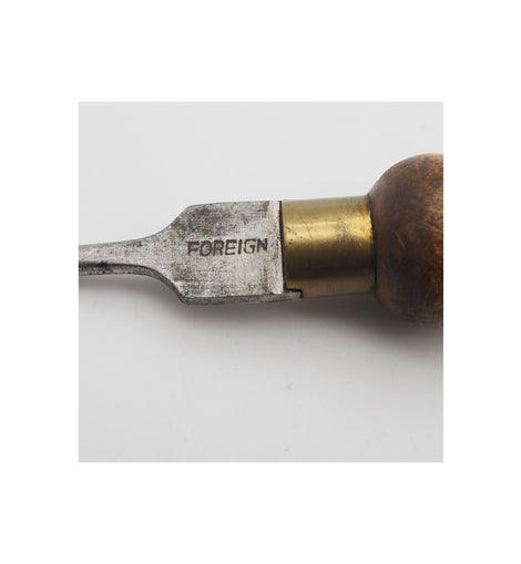 Tiny 4" long cabinet parttern screwdriver with nice shape turned beech handle, stamped Foreign only. Good condition.
