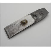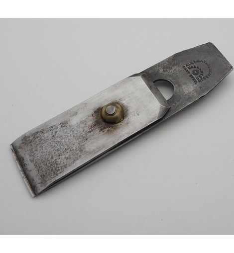 Good little used 2" wide tapered plane iron and backing iron by A. Mathieson & Son of Glasgow. Cast steel. 2 3/8" left to the slot.