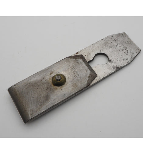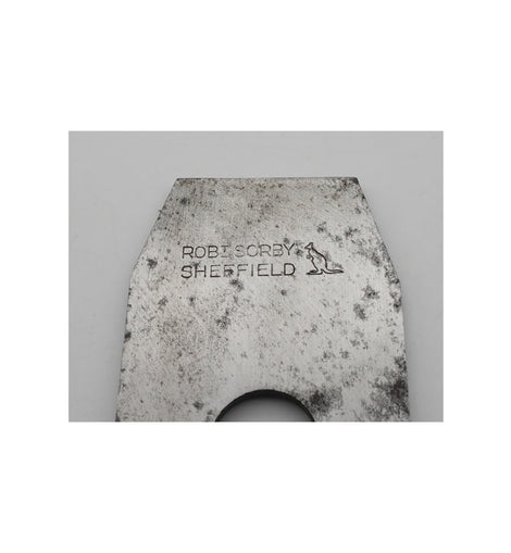 Superb basically unused 2 1/8" wide parallel plane iron and original backing iron by Robert Sorby of Sheffield. This is the slightly thinner version they made specifically for the late model Norris A5 smoothing planes. 2 1/4" left to the slot. Very good condition.