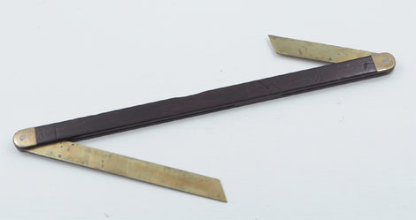 19th century rosewood and brass double bladed Shipwrights bevel in good tight condition. Both brass blades are in good shape and are tight on the hinges. Couple of small old nicks to the rosewood otherwise very good for age. Can't see a makers name but obviously factory made. 12" long.