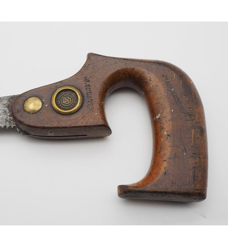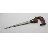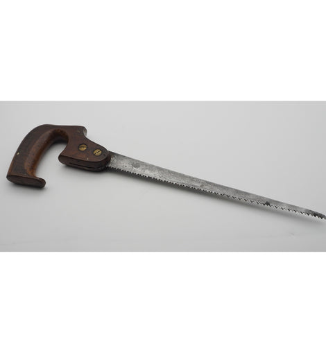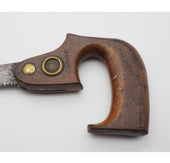 Early, all original, 16" long key-hole saw by Henry Disston & Sons, Phila. USA. Beautiful open applewood handle of a gorgeous colour. Blade stamped Disston also. Slight kink to the end of the blade but otherwise very good for its age.