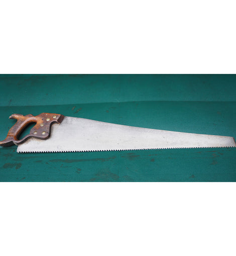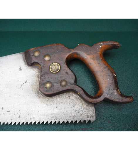 This vintage Robert Sorby rip saw represents Sheffield's finest toolmaking heritage. Crafted for serious woodworkers, the aggressive tooth geometry cuts efficiently along the grain, delivering clean, straight rips through hardwoods and softwoods alike. The well-balanced handle provides control during extended work, whilst the quality steel blade maintains its edge through demanding projects. A prized addition to any traditional workshop, this saw exemplifies the precision engineering that made Sheffield tools legendary among craftspeople.
