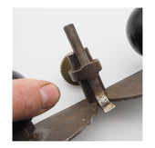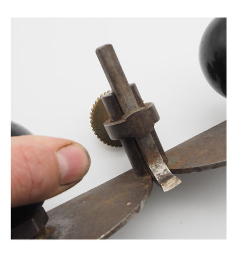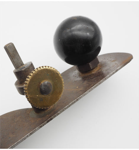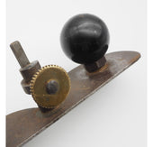 Craftsman made steel router plane of a nice shape. Round handles with large brass knurled blade holding screw. 3/8" wide blade. Good condition.