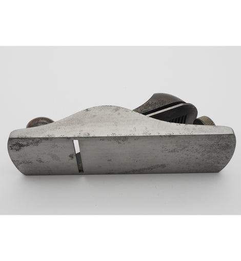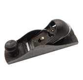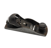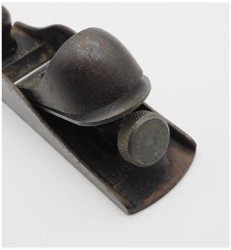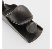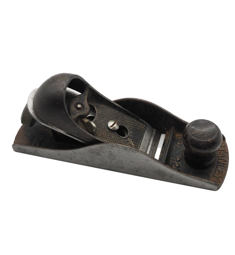 Well used Stanley England No. 220 adjustable block plane. Turned beech front knob with good length Stanley blade. Not a lot of black japanning left inside. Still perfectly useable.