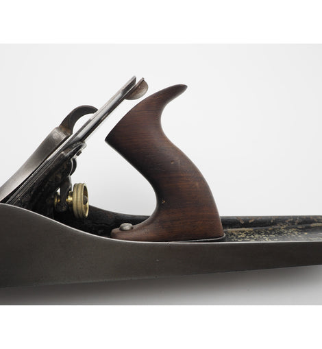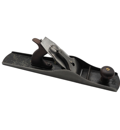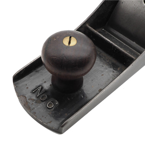 FINE 19th century Stanley USA No. 6 low knob bench plane in very good original condition. The plane still retains almost all of its original black japanning. Good original rosewood fittings with low front knob and near full length original 1892 patent blade. Old style frog with patented lateral adjuster. Remarkably good condition for its age (130 - 140 years old).