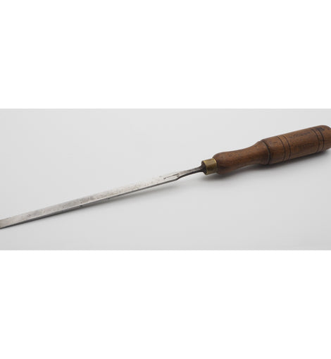 This early, high-quality paring chisel boasts a 5/16" wide thin blade crafted from cast steel, delivering precision and durability with every use.