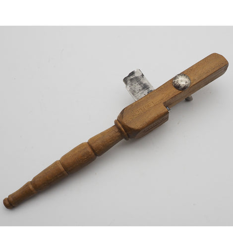Good small size craftsman made oak scratch stock with turned handle. Nicely made funtional tool. Comes with a cutter. 7" long.