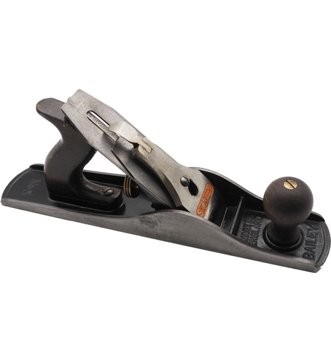 Good little used Stanley England No. 5 jack plane with good original beech handles and full length original blade. All the original black japanning inside. Nickel plating on lever cap slightly rough. 1950's.