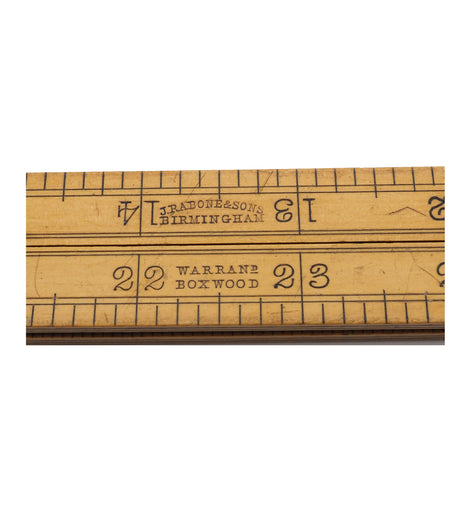 Super clean and early 4 fold 3 foot boxwood and brass rule by John Rabone & Sons of Birmingham. Most of the original finish. Doesn't look like it has been used much at all. Engraved markings.
